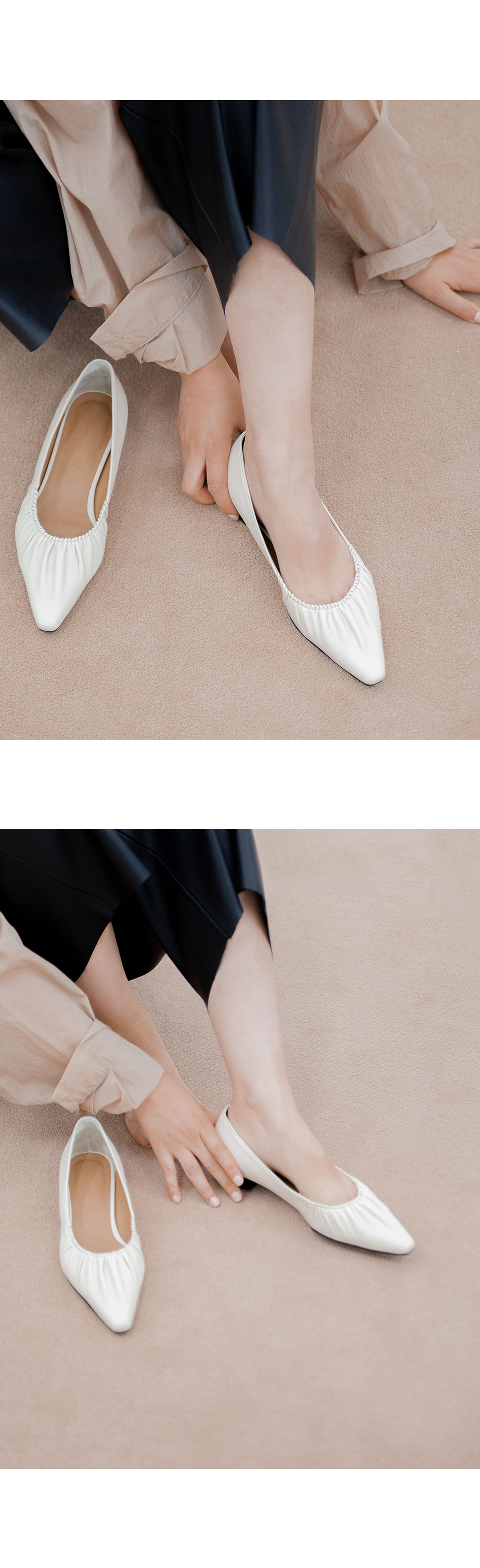 • 셔링 디테일 포인티드 플랫슈즈