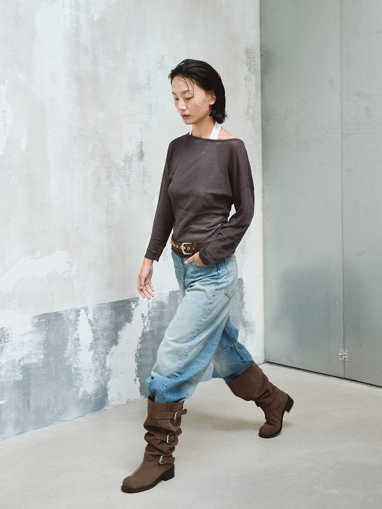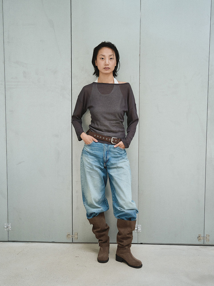 루즈하게 떨어지는 슬라우치 디테일과 터프한 바이커 감각이 조화를 이루어, 세련된 FW 무드를 담아냈습니다.